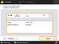 Si l'opció <Iniciar recuperació (l'operació s'iniciarà en prémer el botó)> està establerta en <Off>, apareix la pantalla d'opcions. D'aquesta manera, podreu canviar la configuració abans de prémer <Iniciar impressió> per començar.