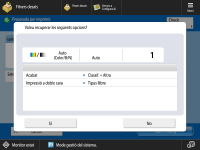Si l'opció <Iniciar recuperació (l'operació s'iniciarà en prémer el botó)> està establerta en <Off>, apareix la pantalla d'opcions quan premeu <Sí>. D'aquesta manera, podreu canviar la configuració abans de prémer <Iniciar impressió> per començar.