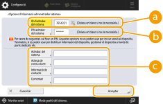 També podeu fer que la introducció de set dígits sigui un requisit per a l'ID i el PIN d'administrador del sistema. Per obtenir-ne més informació, poseu-vos en contacte amb el distribuïdor o el servei tècnic.