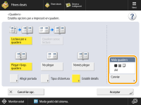 | | Podeu configurar el disseny d'impressió per tal que les impressions es converteixin en un quadern quan es pleguin per la meitat. Aquestes opcions permeten processar automàticament operacions com plegar per la meitat i grapar al plec (Grapar quadern). Equips opcionals |