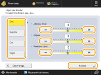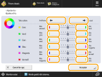 per a <Tots colors>. Per establir cada color per separat, utilitzeu els botons de l'esquerra i la dreta per a cada color. Un cop finalitzat l'ajust, premeu <Bé>.