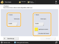 Si voleu moure la imatge del revers quan feu impressions de doble cara, cal que feu servir l'opció <Revers>. Per moure-la a la mateixa posició que a l'anvers, premeu <Igual que en anvers>. Per moure-la simètricament, premeu <Al contrari de l'anvers>. Per moure-la a una posició diferent a la posició de l'anvers, premeu <Establir> i introduïu la distància de desplaçament.
