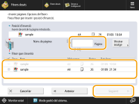 4 | Comproveu l'ordre de les pàgines i premeu <Iniciar inserció>. Totes les opcions d'impressió de cada fitxer queden cancel·lades, i les opcions desades a <Canviar opcions predeterminades> s'apliquen al nou fitxer. <Canviar opcions predeterminades> |