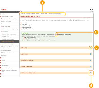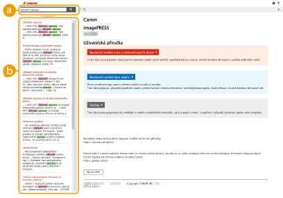 Kliknutím zobrazíte informace, jak používat Uživatelská příručka, jak v ní provádět hledání a jiné informace.