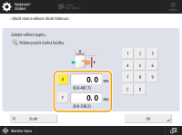 Zadejte délku strany <X> a strany <Y>. Stiskněte <X> nebo <Y> a zadejte délku každé strany pomocí číselných tlačítek.