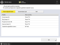 (Monitor stavu) se na displeji zobrazí obrazovka Monitor stavu, na níž můžete zkontrolovat úroveň toneru nebo ostatní indikace stavu.