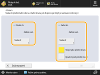 Chcete-li při tisku na obě strany posunout obraz na zadní straně, je třeba zadat nastavení <Zadní strana>. Chcete-li obraz posunout do stejné polohy jako na přední straně, stiskněte <Stejně jako přední strana>. Chcete-li obraz posunout a umístit symetricky, stiskněte <Opačně proti přední straně>. Chcete-li obraz posunout na jiné místo než na přední straně, stiskněte <Nastavit> a zadejte vzdálenost posunu.