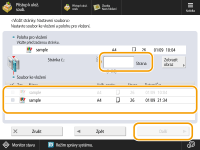 , na tomto tlačítku se zobrazí <Vybrat vše (Max. 100 soub.)>. Jestliže je vybrán jeden soubor nebo více souborů, zobrazí se <Zrušit výběr>. Stiskněte <Vybrat vše (Max. 100 soub.)>, chcete-li ve schránce vybrat současně až 100 souborů, nebo <Zrušit výběr>, chcete-li jejich výběr zrušit.