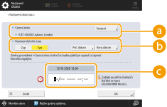 Nastavte datum/čas stroje. Tato nastavení by měla být provedena řádně, jelikož datum/čas se používá v případech, jako je například automatické odeslání e-mailu v zadanou dobu.
