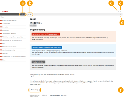 Klik for at angive indstillinger som f.eks. tekststørrelse, layout og visningsmetode for Brugervejledning.