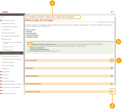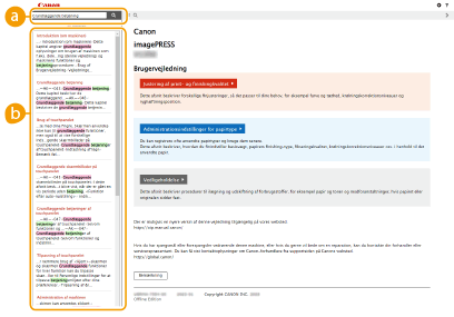 Klik for at få vist oplysninger om, hvordan Brugervejledning, hvordan du søger og andre oplysninger.