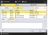 (Statusmonitor), vises skærmen Statusmonitor, hvor du kan kontrollere brugshistorikken for hver funktion, f.eks. kopiering, printning, afsendelse af e-mail, afsendelse/modtagelse af I-faxer osv. Fra denne skærm kan du også printe brugshistorikken for hver funktion.![]() |