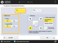 Du kan konfigurere maskinen, så den altid printer brugerinformationer, som f.eks. navnet på den indloggede bruger, på printede eller kopierede dokumenter. Med denne funktion kan du identificere, hver der producerede hvert dokument ved blot at tjekke de printede informationer, noget der kan modvirke uautoriseret kopiering. Administrator- eller enhedsadm-rettigheder er nødvendige for at kunne konfigurere disse indstillinger.