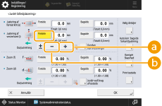 Tryk på <+>, hvis billedjusteringen varierer meget for tykke ark. Tryk på <->, hvis der opstår papirstop for tynde ark. Hvis tilstanden ikke forbedres, justeres indstillingsværdien i <Transporthastighed: Bag> herunder.