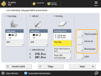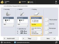 Angiv efter finishing- format | 3-vejs- trimning | 364,0 mm til dobbelt størrelse af hoveddokumentet + 30,5 mm (364,0 mm til 487,7 mm) | Bredde på finishing-formatet + 13,0 mm til 79,0 mm (257,0 mm til 330,2 mm) |