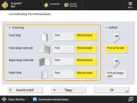 2 | Vælg kopiindstillingerne i <Forreste forsatsblad> og <Bageste forsatsblad> tryk på <OK>.Tryk på <Efterlad tom>, hvis du ikke vil kopiere forsatsbladene. Hvis du fremfører papir til forsatsbladet fra "Document Insertion Unit-R", skal du vælge <Efterlad tom>. Hvis du vil indstille papiret til forsatsbladene, skal du trykke på <Skift> for <Vælg papir> vælg papirkilden tryk på <OK>. |