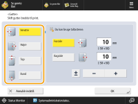 Tryk på <Forside> eller <Bagside>, og indtast hver margenbredde.