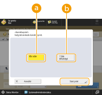 Du kan ikke vælge <Korrekturprint> for følgende jobs. Et job, for hvilket Staksortering eller Staksortering med forskydning er indstillet Et job, der venter på at blive kopieret, eller som er sat på pause Et job, der i øjeblikket laves som prøvesæt Et job, der i øjeblikket laves som korrekturprint Hvis den resterende kopi er den sidste eller næstsidste, kan du ikke lave et korrekturprint ved at vælge <Alle sider>. Hvis der er få sider i kopien, vil du muligvis ikke kunne lave korrekturprint ved at vælge <1 Side (tilfældigt)>. Det vil måske tage noget tid at aflevere, også selvom du vælger <Korrekturprint>. |