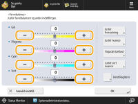 Hvis fire indstillinger vises (<Justér farvemætning>, <Just. nuance>, <Finjustér tæthed>, <Justér sort nuance>)