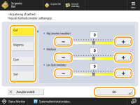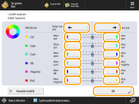 <Finjustér tæthed>Vælg en farve, og juster dens tæthedsniveau efter dens tæthedsområde ved at bruge knappen <-> eller <+>. Når justeringen er færdig, skal du trykke på <OK>.