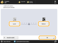 <Justér farvemætning>Hvis du vil indstille mætningen for alle farver, skal du bruge knappen <Lav> eller <Høj> for <Alle farver>. Hvis du vil indstille hver farve separat, skal du bruge knappen <Lav> eller <Høj> for hver farve. Når justeringen er færdig, skal du trykke på <OK>.
