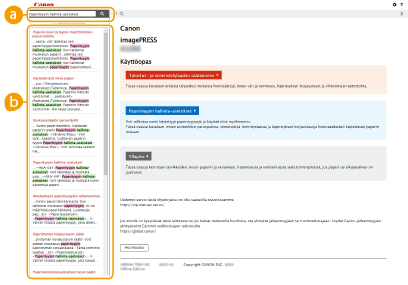Näet napsauttamalla tietoja Käyttöopas -oppaan lukemisesta, hakujen suorittamisesta sekä muita tietoja.