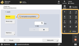 Kun numeropainikkeet ovat näkyvissäKun <  Voit käyttää num.painikkeita.> on näkyvissä, voit syöttää numeroarvoja numeropainikkeilla . Esimerkki: <Poista sivu>-asetusikkuna Kun <  Syötä numeropainikkeilla.> on näkyvissä, vain numeropainikkeilla voi syöttää numeroita. |