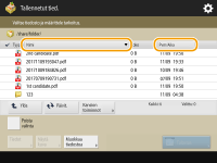 Kun luettelossa on useita töitä/tiedostoja, voit lajitella luettelon valitsemalla <Nimi> tai <Pvm/Aika>. Kun