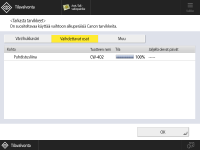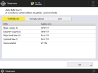 On suositeltavaa tarkistaa jäljellä oleva väriaineen määrä ennen suuren tulostustyön aloittamista, jotta voidaan päättää, tulisiko uusi värikasetti valmistella.