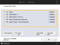 (Laskin-/laitetiedot).![]() (Näytössä näkyvät kohteet saattavat vaihdella mallin ja asennettujen lisävarusteiden mukaan.) |