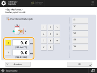 2 | Selecteer het type envelop dat in het papiermagazijn is geplaatst. Als het type envelop niet goed is ingesteld, zal een papierstoring optreden. Als u enveloppen met aangepast formaat plaatst, drukt u op <Gebruiker>  <Volgende>  en voert u de enveloppe-afmetingen in. Druk op <X> of <Y>  en gebruik de numerieke toetsen om de lengte van de respectieve afmeting in te voeren. |