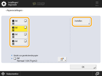 Selecteer de knop voor het papiermagazijn waarin het papier is geplaatst en druk op <Inst.>.
