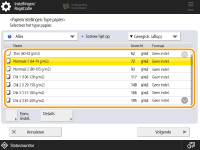 Als het papiertype van het papier dat u hebt geplaatst, niet wordt weergegeven in het gedetailleerde instelscherm, kunt u het registreren in de lijst met papiertypen.