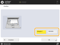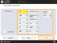 1 | Selecteer het papiermagazijn waarin het papier is geplaatst en druk op <Gebruikersformaat>. |
