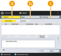 (Statusmonitor) drukt, wordt het scherm <Statusmonitor> weergegeven. U kunt niet alleen de bedrijfsstatus controleren, maar ook de gedetailleerde informatie over het papier in de papierbron en de informatie op de hoofdeenheid, zoals de resterende hoeveelheid toner.
