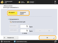 Om specifieke pagina's af te drukken, selecteert u <Aangegeven pagina's>. Voer de pagina's in door op <Start pagina> of <Einde pagina> te drukken.