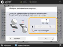 Deze modus kan invloed hebben op de invoer van papier. Omdat het verhogen van de waarde kan resulteren in een hogere kans op papierstoringen, wordt aanbevolen de waarde in kleine stappen aan te passen. Als een hoek tijdens het afdrukken op beide zijden wordt gevouwen, kunnen onjuiste instellingen voor krulcorrectie op de eerste zijde van 2-zijdig afdrukken tot een papierstoring leiden. |