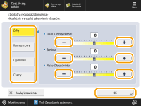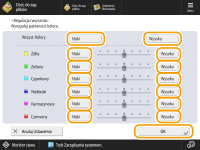 w pozycji <Wszyst. Kolory>. Użyj przycisków po lewej i prawej stronie każdego koloru w celu skonfigurowania każdego koloru z osobna. Po zakończeniu regulacji naciśnij przycisk <OK>.