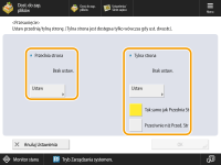 Jeżeli chcesz przesunąć obraz na tylnej stronie podczas drukowania na obu stronach, niezbędne jest określenie ustawienia <Tylna strona>. Aby przesunąć do tej samej pozycji, co przednia strona, naciśnij na <Tak samo jak przednia strona>. Aby przesuwać symetrycznie, naciśnij na <Przeciwnie do pierwszej str.>. Aby przesunąć do pozycji innej, niż przednia strona, naciśnij na <Ustaw> i wprowadź wartość przesunięcia.