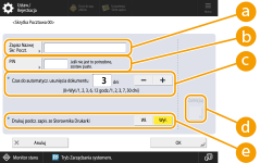 <Czas do automatycz. usunięcia dokumentu>Naciśnij na <->/<+>, aby zmienić czas do automatycznego usuwania zapisanych plików. Jeżeli ustawisz 0, pliki nie będą usuwane.