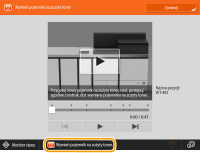 Nacisnąć przycisk <Pomiń Błąd> i kontynuować drukowanie. Niemniej jednak dane, które nie mogły zostać zarejestrowane nie będą poprawnie wydrukowane. Aby uzyskać informacje na temat drukowania dzielonego, patrz Drukuj.