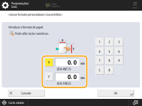 Especifique o comprimento do lado <X> e do lado <Y>. Carregue em <X> ou <Y> para introduzir o comprimento de cada lado com as teclas numéricas.