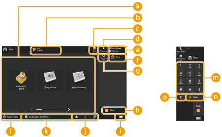 Estes botões permitem abrir os ecrãs de funções básicas, como "Aceder fich. guardados".