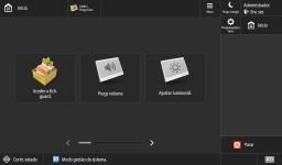 Carregue em apresentado no ecrã <Início> e o ecrã das funcionalidades básicas, para personalizar o ecrã tal como redistribuir botões ou criar atalhos. Personalizar o Visor do Painel Digital![]() É possível alterar as programações relacionadas com a apresentação do ecrã, como, por exemplo, que ecrã é apresentado imediatamente depois de ligar a máquina e se é apresentada a mensagem de quantidade restante de papel e toner. <Programações de apresentação> Pode programar o ecrã para ser apresentar quando tiver passado um determinado período de tempo sem atividade. <Função após reposição automática> |