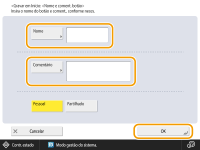Introduza o nome do botão e um comentário, selecione <Pessoal> ou <Partilhado> e carregue em <OK>.