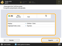 Se a opção <Começar operação para chamada (a operação começa quando se carrega no botão).> estiver programada para <Desligado>, é apresentado o ecrã de programação quando carrega em <Sim>. Isso permite-lhe alterar as programações antes de carregar em <Inic. impressão> para começar.