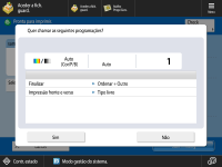 Se selecionar <Ligado> tanto para <Mostrar ecrã de confirmação ao chamar> como para <Começar operação para chamada (a operação começa quando se carrega no botão).>, a operação de impressão começa depois de selecionar <Sim> no ecrã de confirmação.