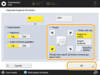 Especifique a posição de impressão e a orientação do original e carregue em <OK>.