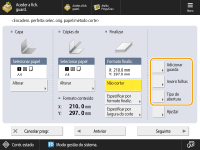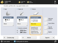 selecione <Corte na vertical> ou <Corte 3 vias> e depois introduza o formato de finalização desejado