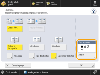 Carregue em <Alterar> em <Tam. apresent.> e selecione o formato de papel do folheto.